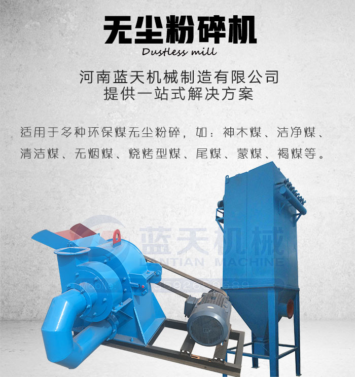 河南藍(lán)天機(jī)械制造有限公司生產(chǎn)的無塵粉碎機(jī)專業(yè)針對(duì)潔凈型煤、清潔型煤、無煙木炭、炭粉的粉碎處理,是新型環(huán)保無塵粉碎機(jī)設(shè)備,公司提供一站式解決方案,滿足用戶需求的同時(shí)不斷提升環(huán)保無塵粉碎機(jī)技術(shù),專業(yè)無塵粉碎機(jī)廠家請(qǐng)認(rèn)準(zhǔn)“藍(lán)天”!
