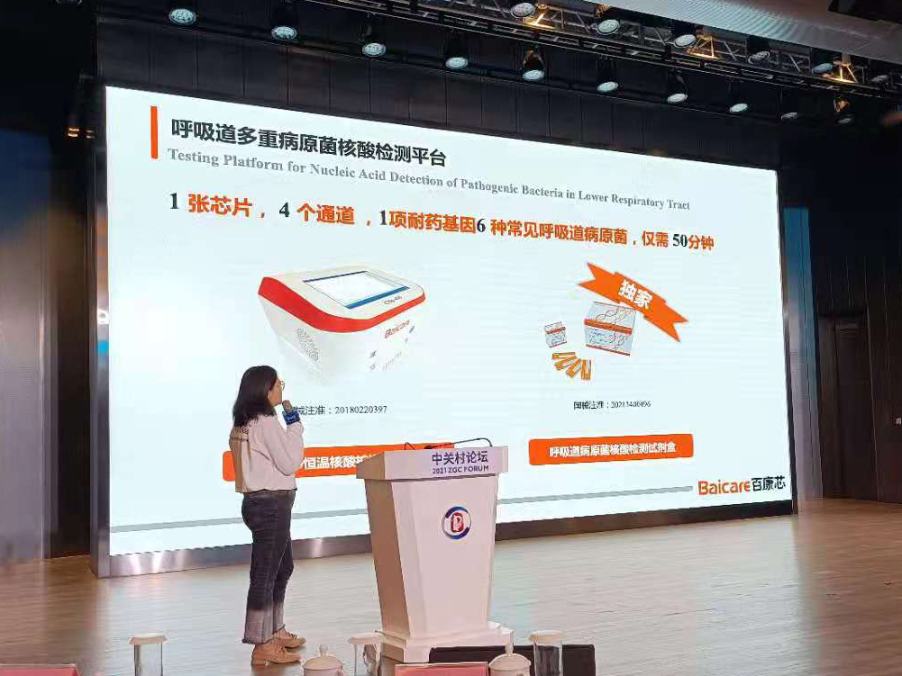 中關(guān)村論壇國(guó)際技術(shù)交易大會(huì)(新技術(shù)新產(chǎn)品首發(fā)與推薦大會(huì))上,百康芯市場(chǎng)總監(jiān)白雅麗女士帶來(lái)了《國(guó)內(nèi)首款針對(duì)住院患者的呼吸道多病原核酸檢測(cè)產(chǎn)品》報(bào)告,詳細(xì)講述了該產(chǎn)品可實(shí)現(xiàn)一次加樣多指標(biāo)并行檢測(cè),以更加簡(jiǎn)捷的方法和更短的檢測(cè)時(shí)間對(duì)多種病原體進(jìn)行檢測(cè)、分析和報(bào)告。為臨床醫(yī)生提供快速而準(zhǔn)確的檢測(cè)結(jié)果,減少病人等待的窗口期和治療周期,為臨床經(jīng)驗(yàn)用藥提供科學(xué)依據(jù)。 ![]() ![]()