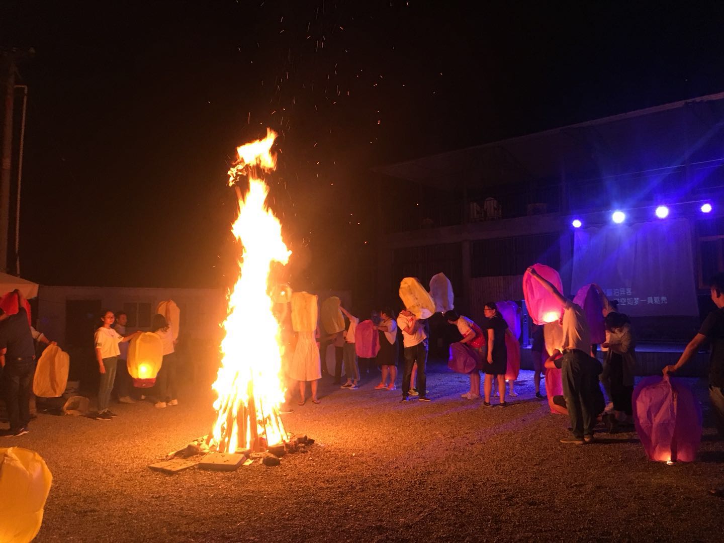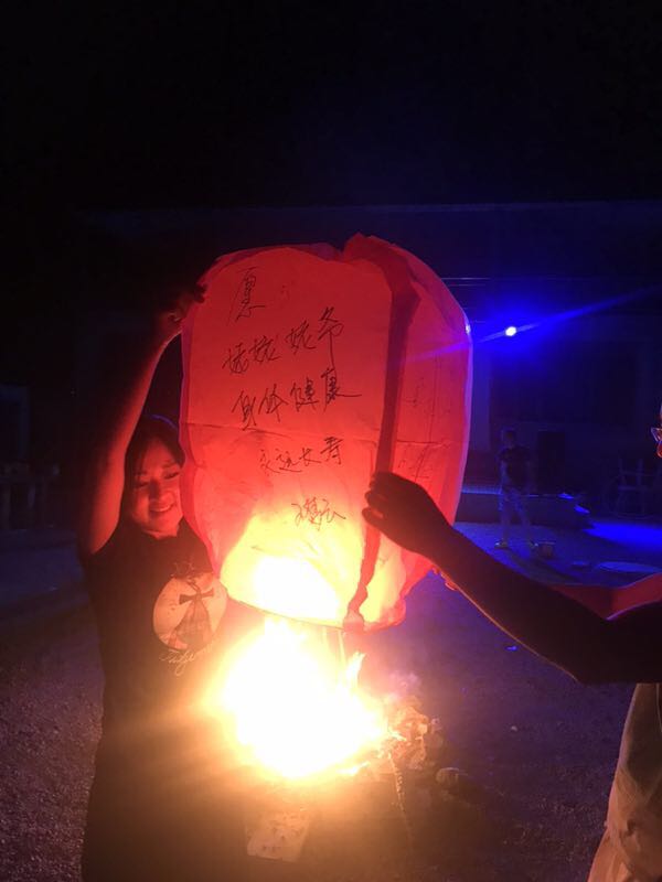 走過驚險(xiǎn)刺激的玻璃棧道,回去吃個(gè)晚飯壓壓驚。 團(tuán)建活動(dòng)part 3:篝火晚會(huì) 篝火晚會(huì)可是本次團(tuán)建中“小芯”最期待的環(huán)節(jié)呢!大家圍坐在農(nóng)家小院,點(diǎn)燃篝火,伴著美妙的音樂,放飛寫滿自己心愿的孔明燈。