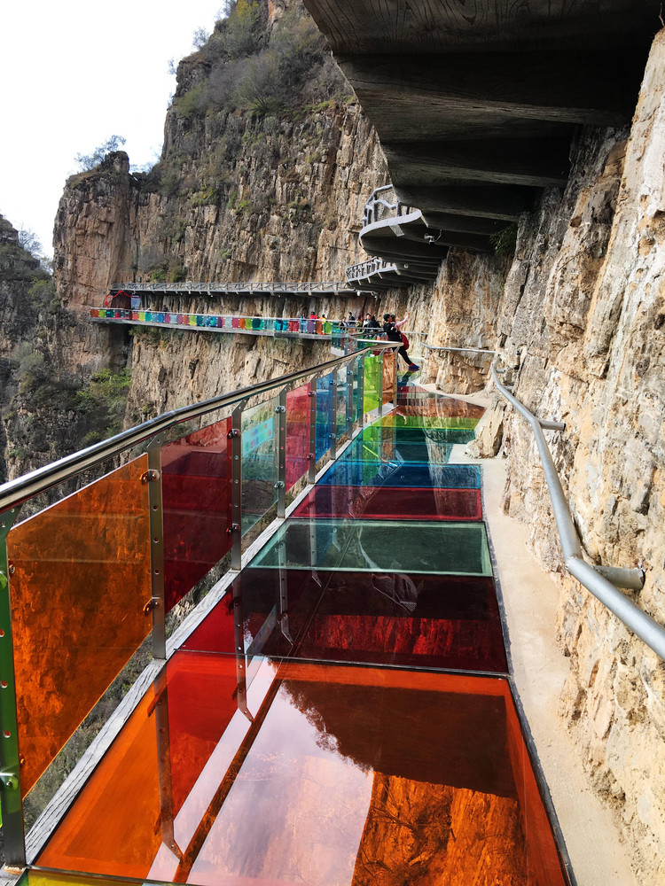 (豐盛的農(nóng)家菜) 團(tuán)建活動(dòng)part 2:挑戰(zhàn)七彩玻璃棧道 吃過午飯,一行人乘車去往東湖港。東湖港的玻璃棧道是七彩的,這是國內(nèi)首家“七彩玻璃棧道”,挑戰(zhàn)區(qū)全長1200米,其中七彩玻璃128米,高差600余米。走在玻璃棧道上,猶如踩著一條長長的彩虹橋,驚險(xiǎn)刺激而又不失浪漫夢幻!