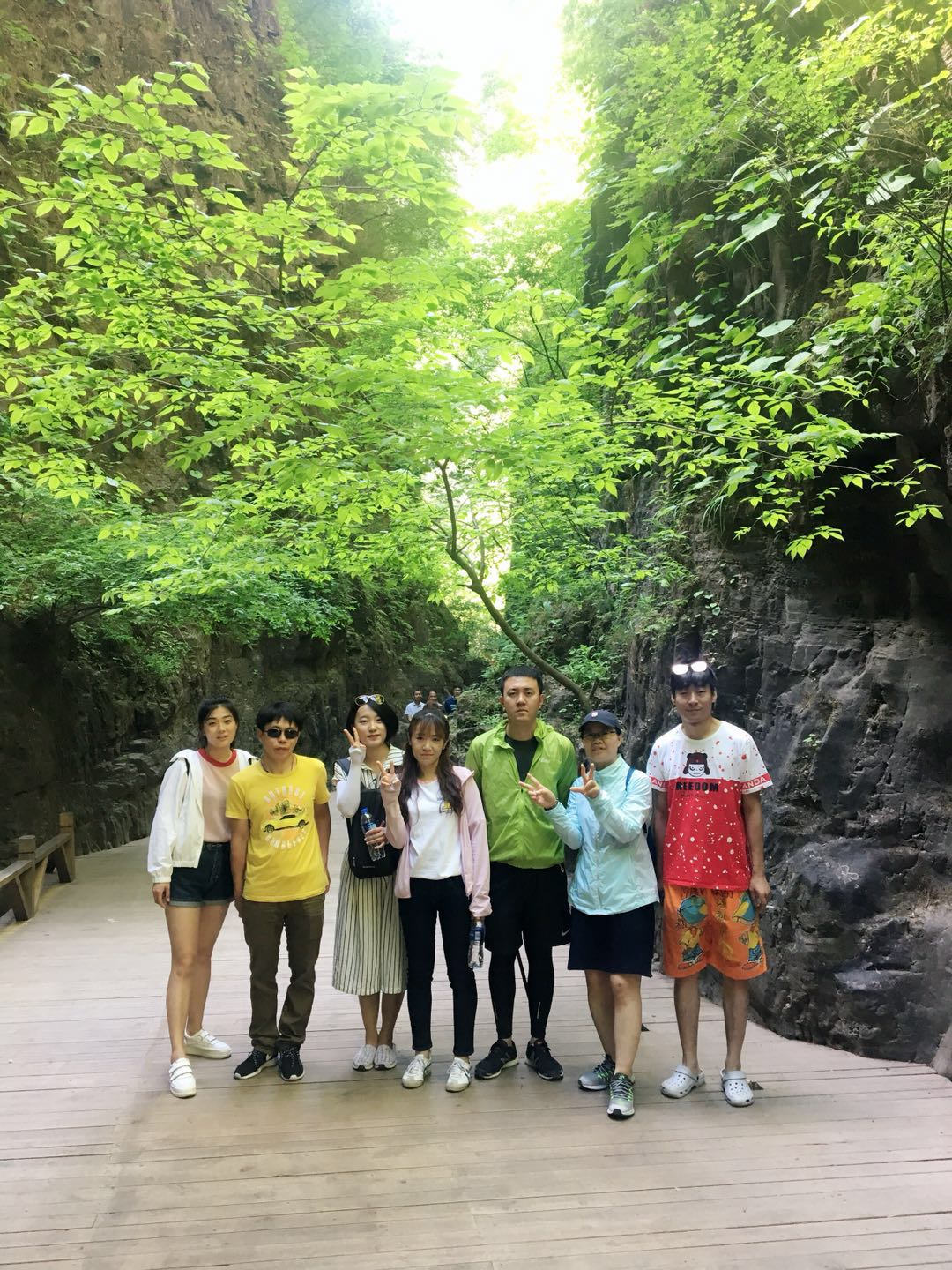 團(tuán)建活動(dòng)part 4:游覽“天下第一峽” 團(tuán)建第二天我們要去到的是被譽(yù)為“天下第一峽”的百里峽景區(qū),聽聞百里峽天梯有三千余階,可是嚇?biāo)馈皩殞殏儭蹦?,幸好?jīng)過一夜的休息,大家精力已恢復(fù)大半。 走在狹窄的峽谷中,駐足而望,兩側(cè)聳然屹立的翠色絕壁,頭頂上若隱若現(xiàn)的一線天光,遠(yuǎn)處山巔的藍(lán)天白云,腳下忽左忽右的溪流……若不是那彩色纜車過于美好,“小芯”肯定是要徒步登上山頂?shù)?!沒錯(cuò),“小芯”真的是被纜車“色誘”過去的?。?!