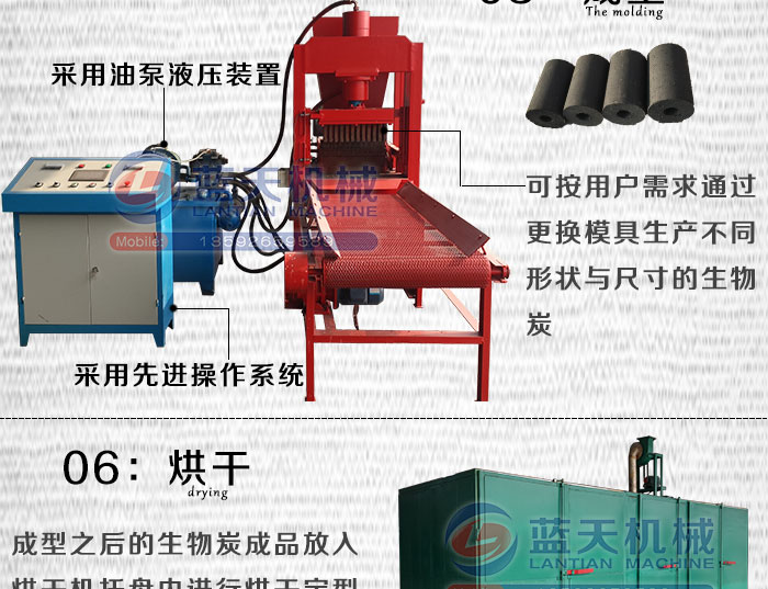 藍天機械生產(chǎn)的生物炭成型機主要用于成型生物質(zhì)廢料炭化之后的物料,通過更換模具可實現(xiàn)一機多用,滿足用戶的不同需求。液壓生物炭成型機采用PLC全程智能控制,并配備數(shù)據(jù)輸出裝置,實現(xiàn)智能無人操作。藍天機械是河南地區(qū)專業(yè)生物炭成型機廠家,咨詢更多相關(guān)可撥打官網(wǎng)熱線。