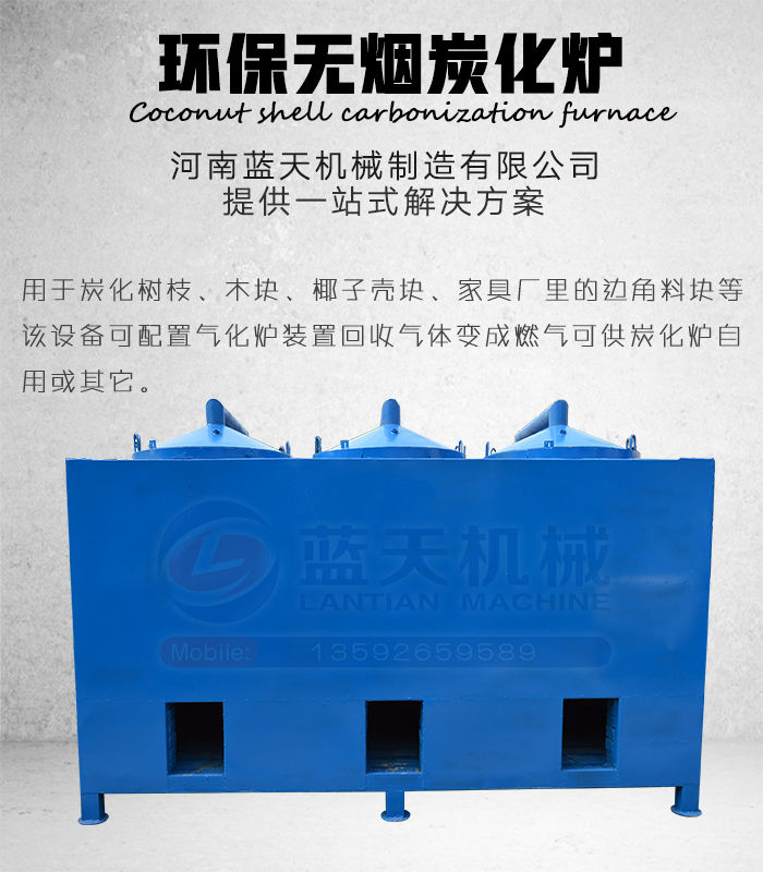 環(huán)保無(wú)煙炭化爐是河南藍(lán)天機(jī)械制造有限公司研發(fā)生產(chǎn)用于搭配機(jī)制木炭機(jī)的主要配套設(shè)備之一,環(huán)保無(wú)煙炭化爐是新型炭化爐設(shè)備,可以達(dá)到生產(chǎn)環(huán)保無(wú)煙無(wú)塵,煙氣回收后可供烘干機(jī)等設(shè)備使用。無(wú)煙炭化爐是機(jī)制木炭機(jī)配套設(shè)備最新研發(fā)新型炭化爐設(shè)備,可以達(dá)到生產(chǎn)無(wú)煙無(wú)塵,煙氣回收后可供烘干機(jī)等設(shè)備使用。